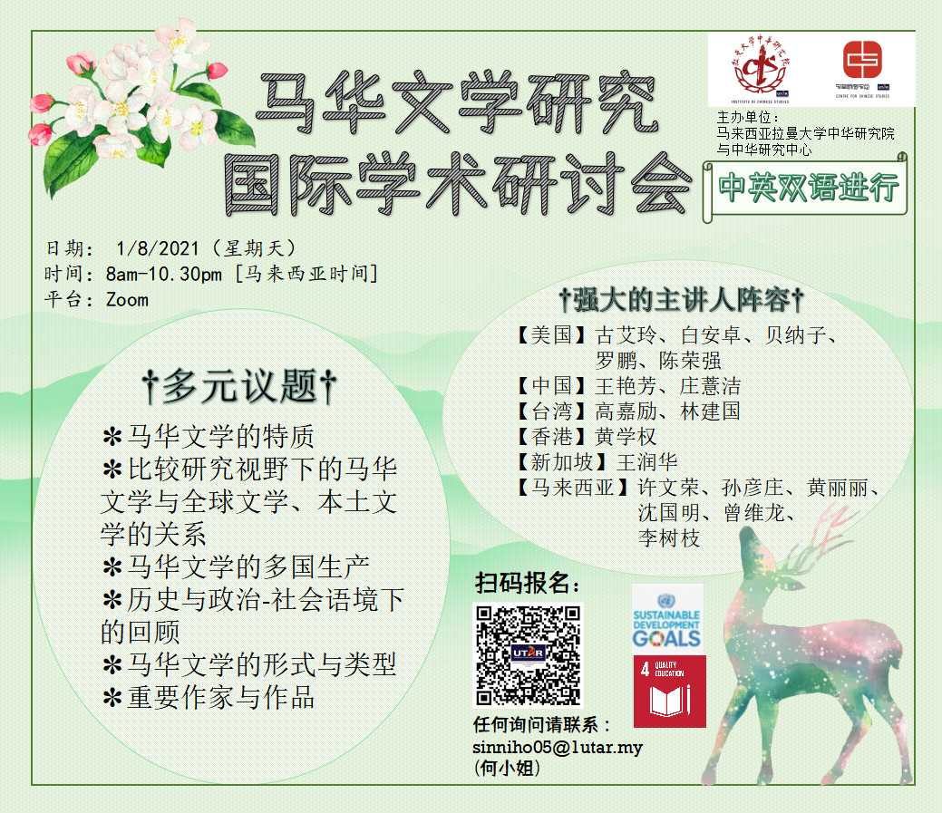 (吉隆坡4日讯)拉曼大学(优大;UTAR)中华研究院与中华研究中心将于8月1日(星期日),通过ZOOM网络视讯会议平台主办线上”马华文学研究国际学术研讨会”。